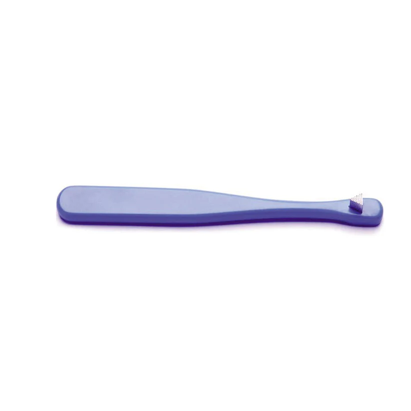Band seating instrument with hard metal triangular serrated tip, different colors.